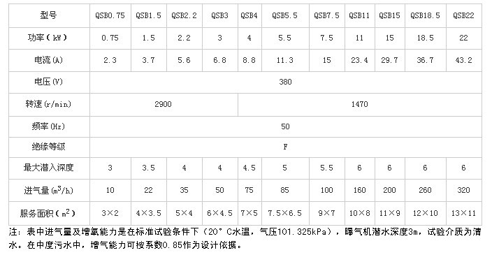 五,QXB離心式潛水曝氣機性能參數